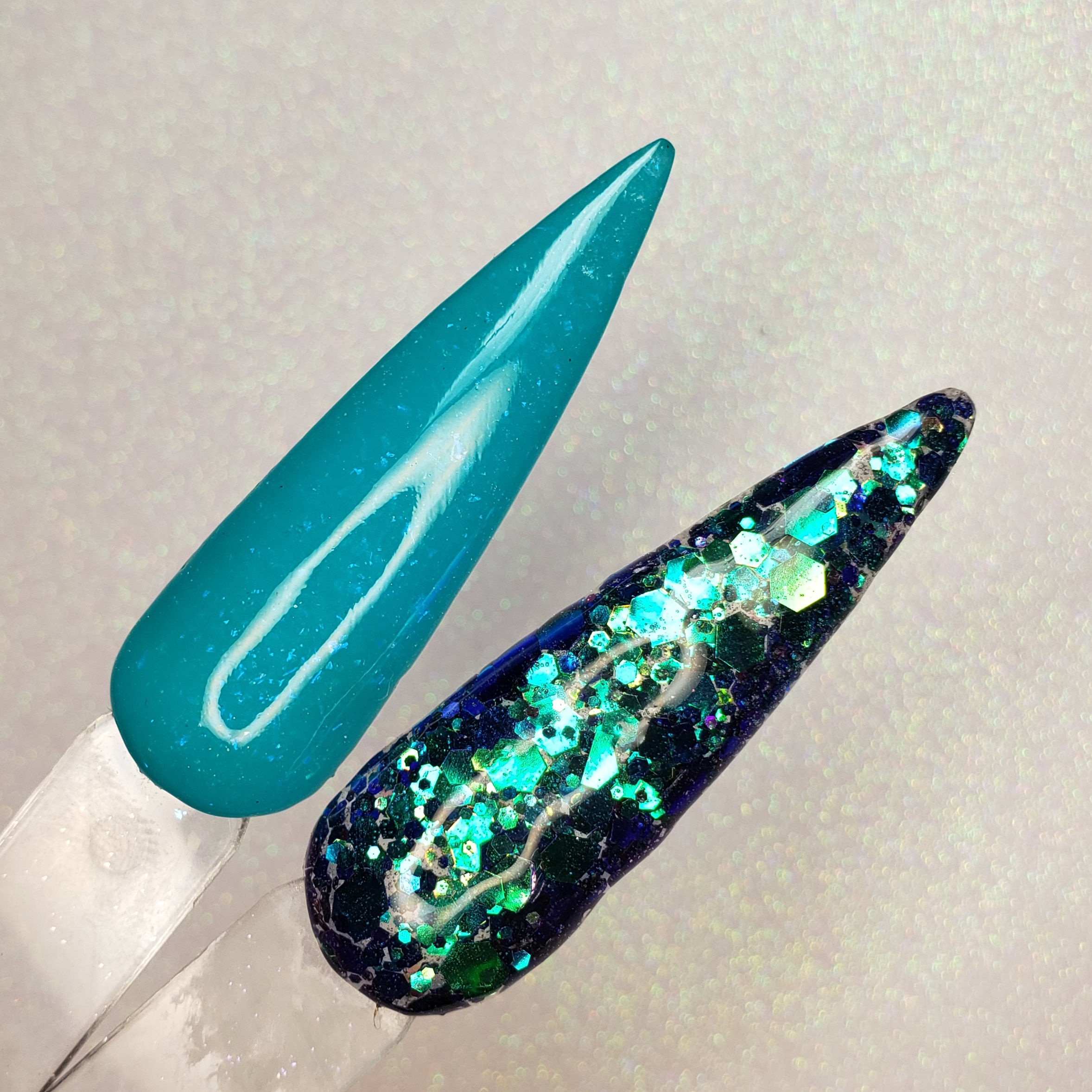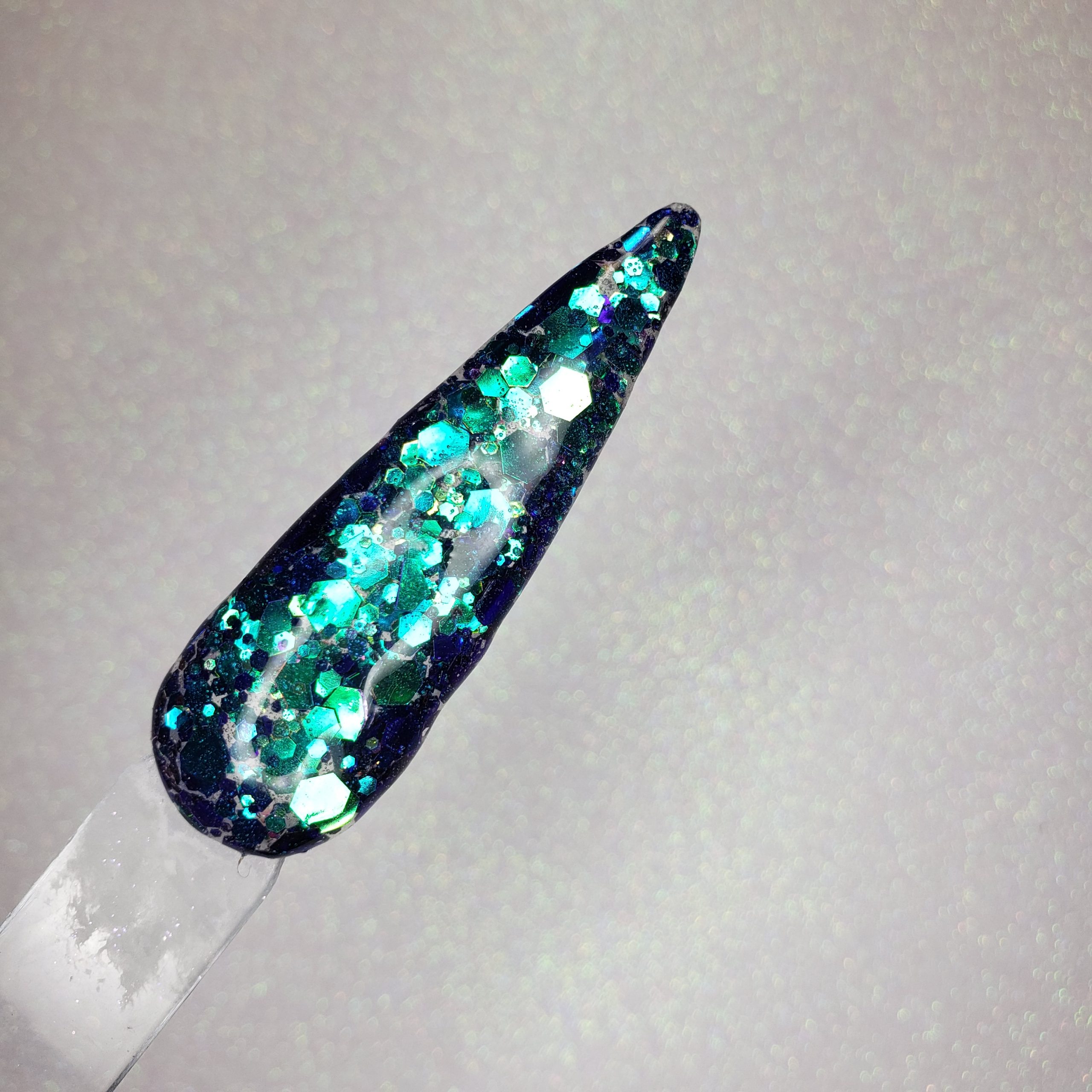 A chunky mix of deep blue and navy that shifts to a teal/green.