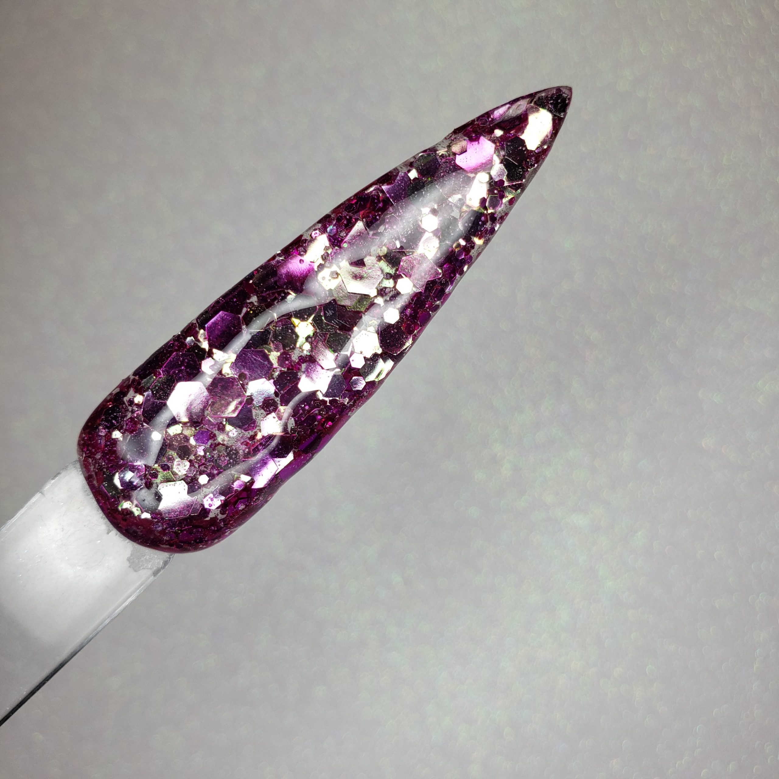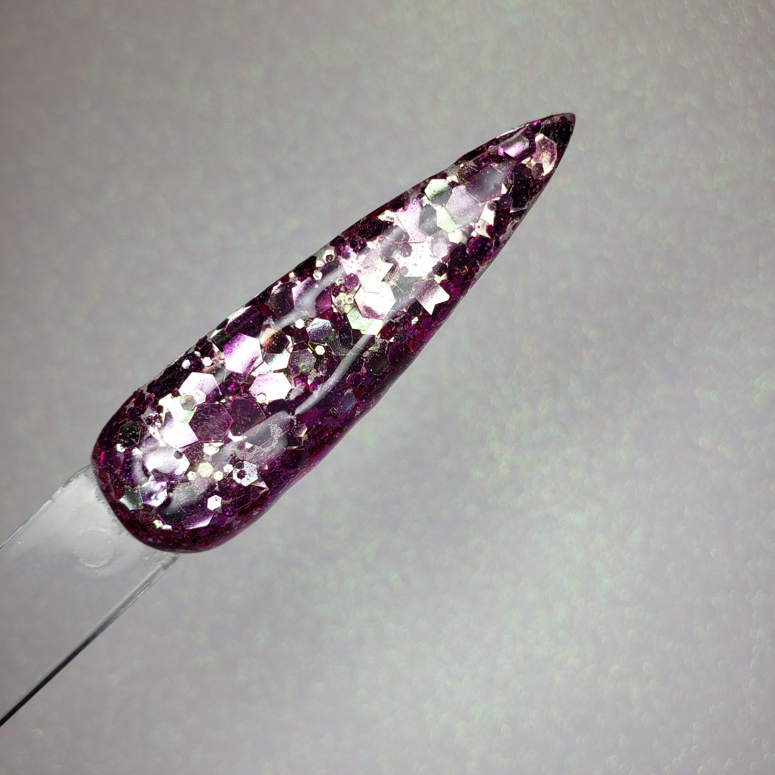 A chunky mix of deep purple/burgandy that shift to a silver.