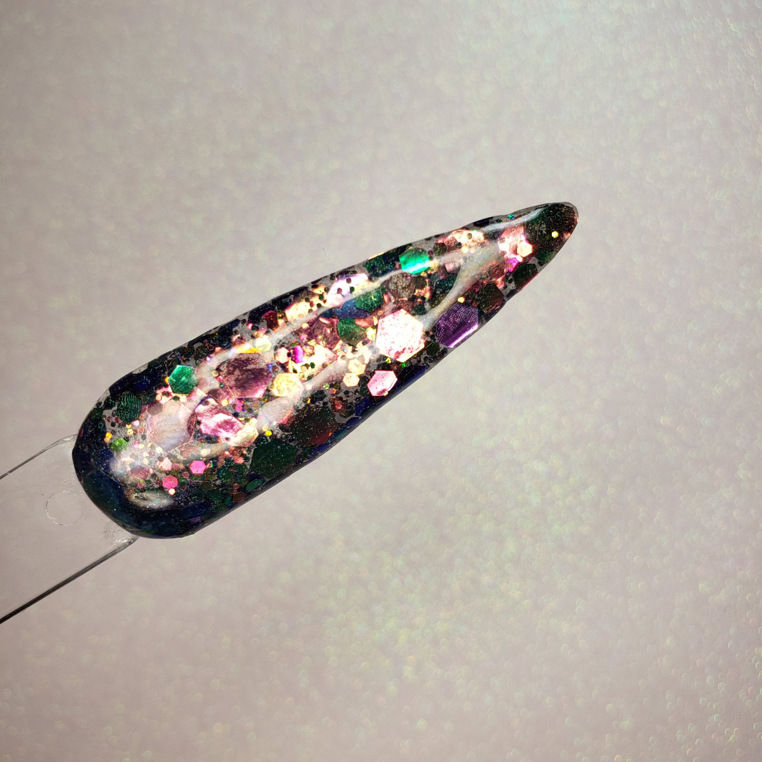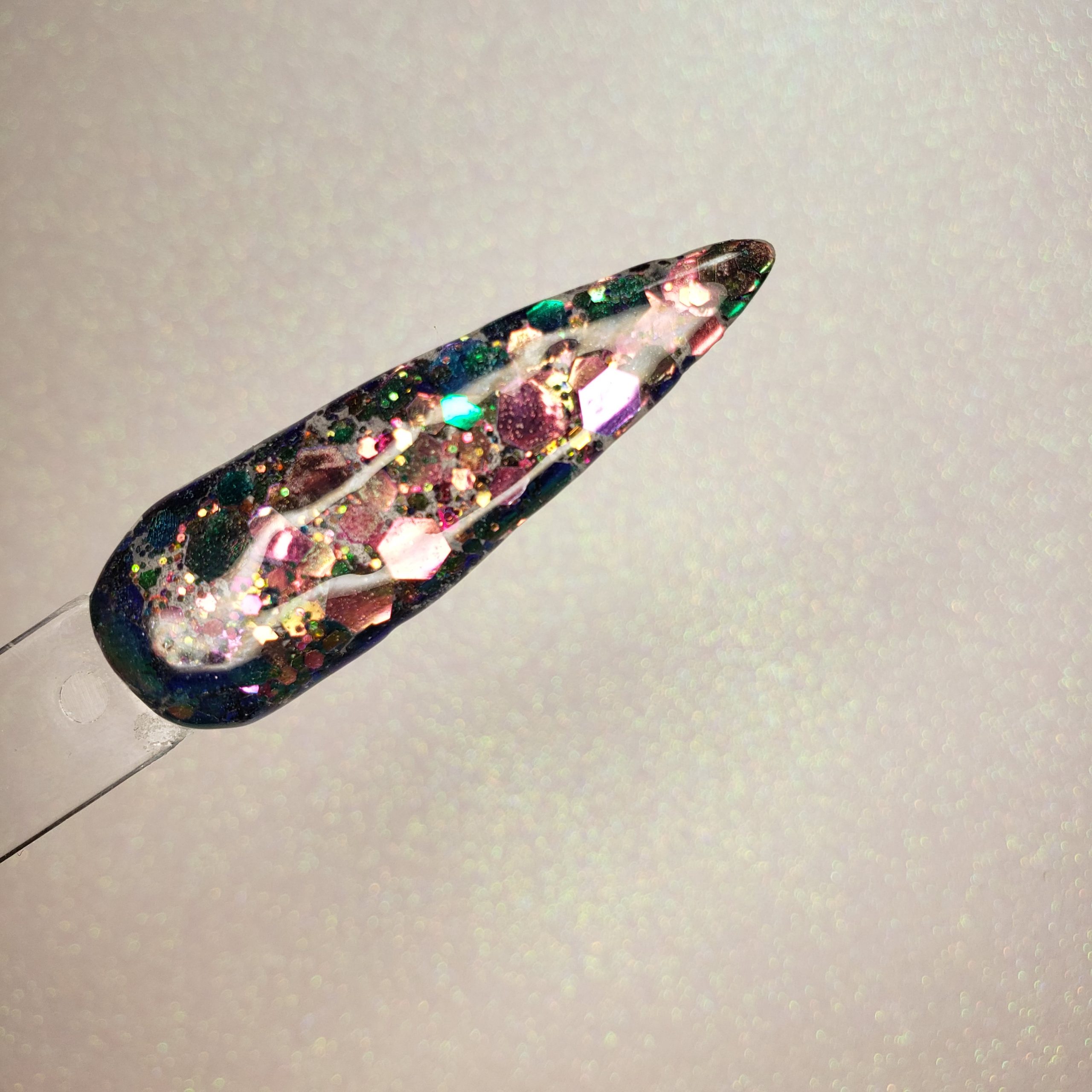 The ultimate shifter. Initially this chunky blend is green and red, with bits of pink, purple and yellow.
