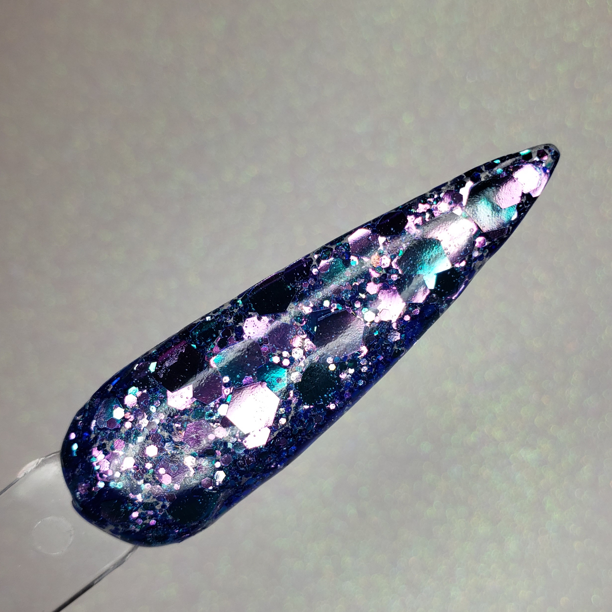 A chunky mix of light and dark blues that shifts to purples and pinks.