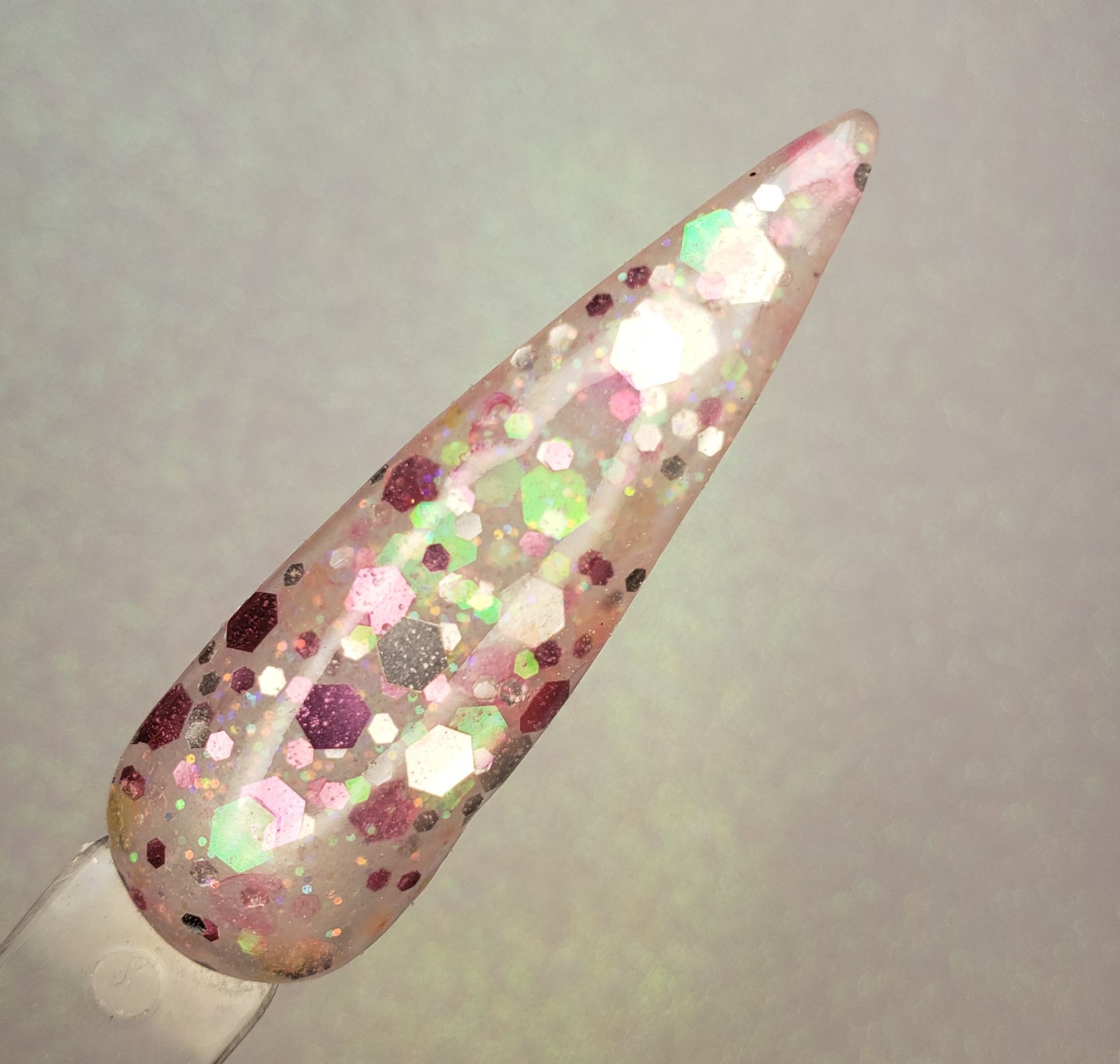 A unique blend of Rose Gold, and iridescent glitters in varying sizes.