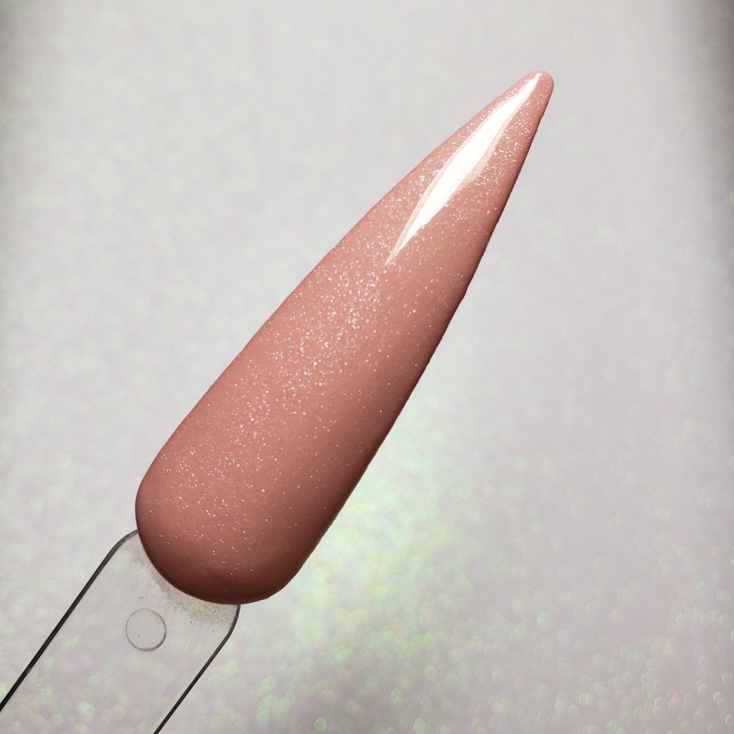 A light cotton candy/baby pink with shimmer. Darker undertones.