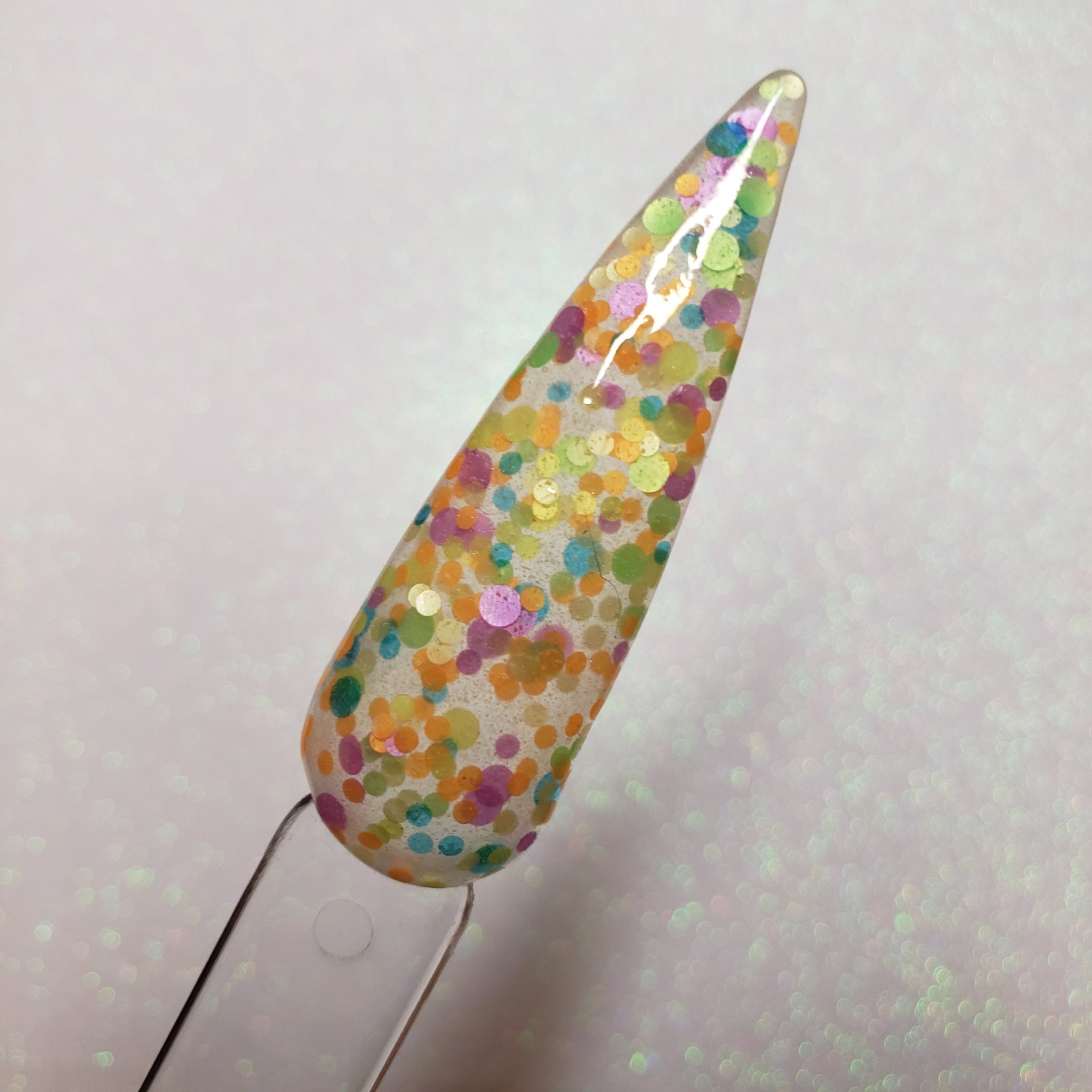 A blend of neon pink, blue, yellow, green, purple, and orange dots in varying sizes.