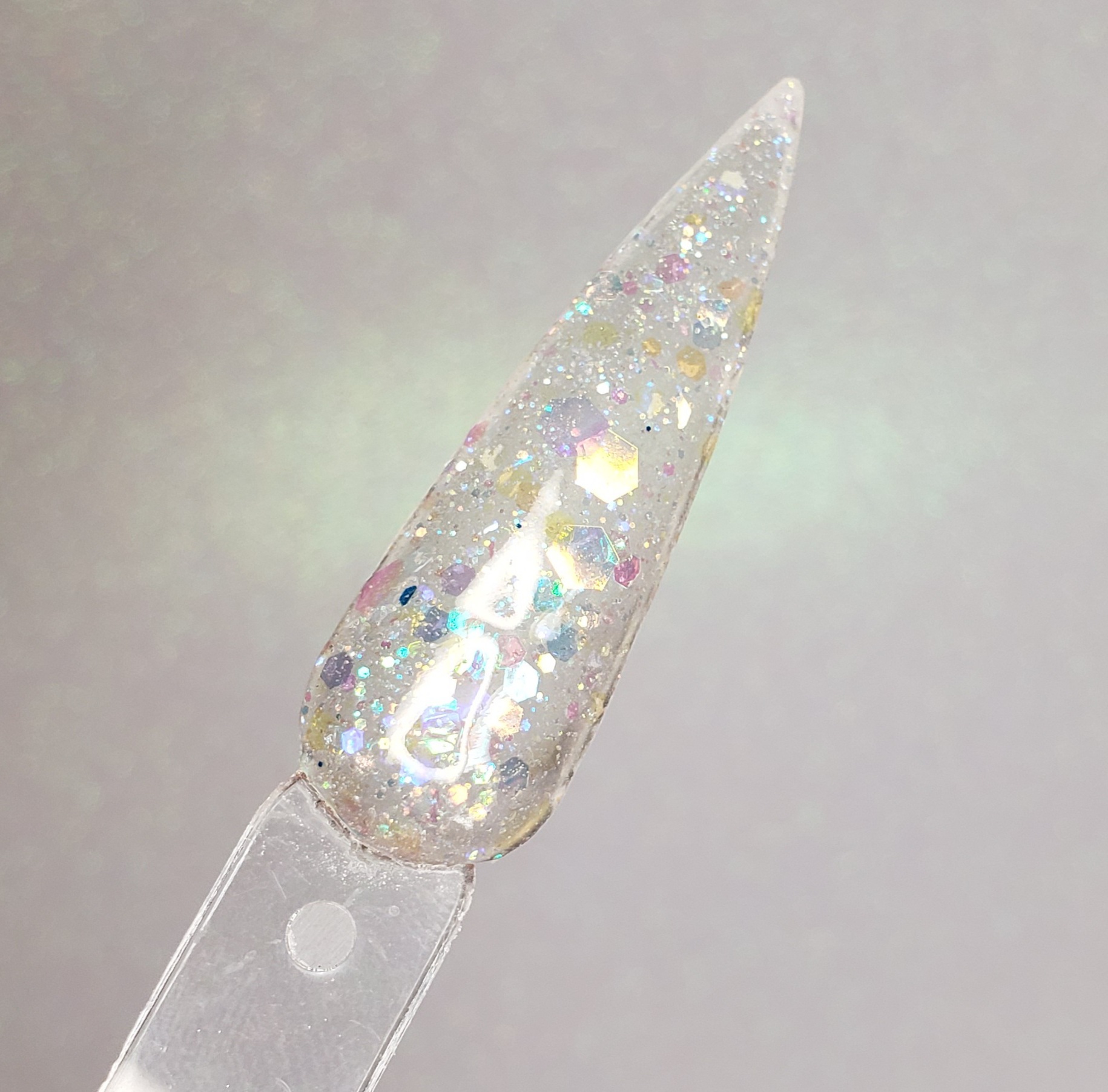 A blend of multicolor iridescent shifting glitters in varying sizes.