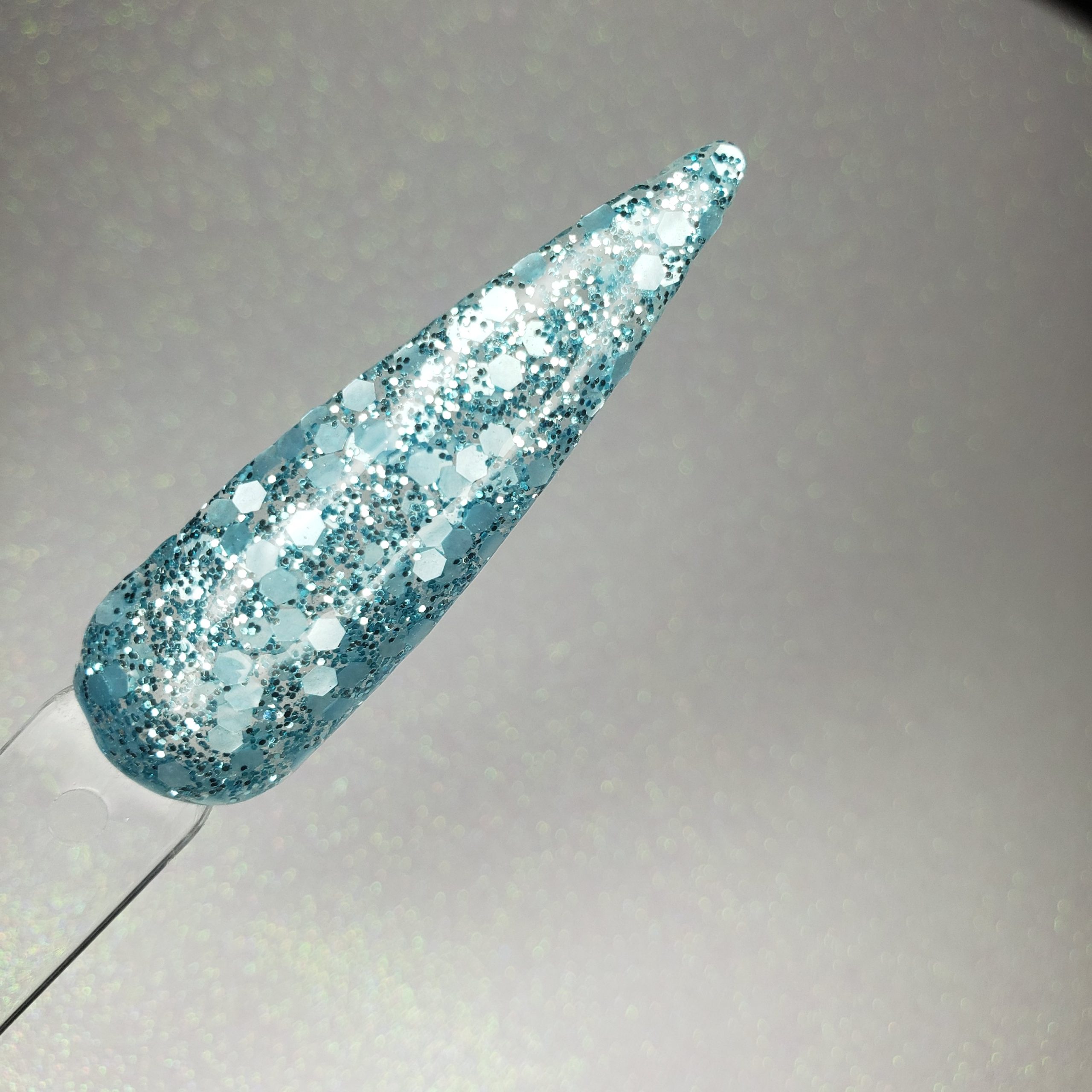 A mix of blue extra fine glitter, and larger matte aqua glitter.
